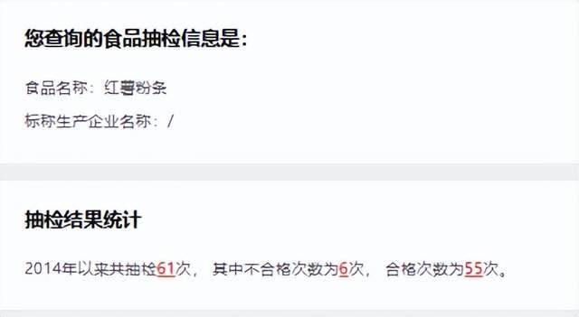 花爸在国家食品安全抽检公布系统查询发现,粉条的不合格率是比较高的,而不合格项目基本上都是铝残留量超标。